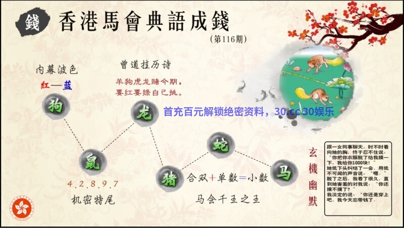 120期:推荐生活幽默/财神奇缘/两波中特/马会玄机/港彩九龙玄机